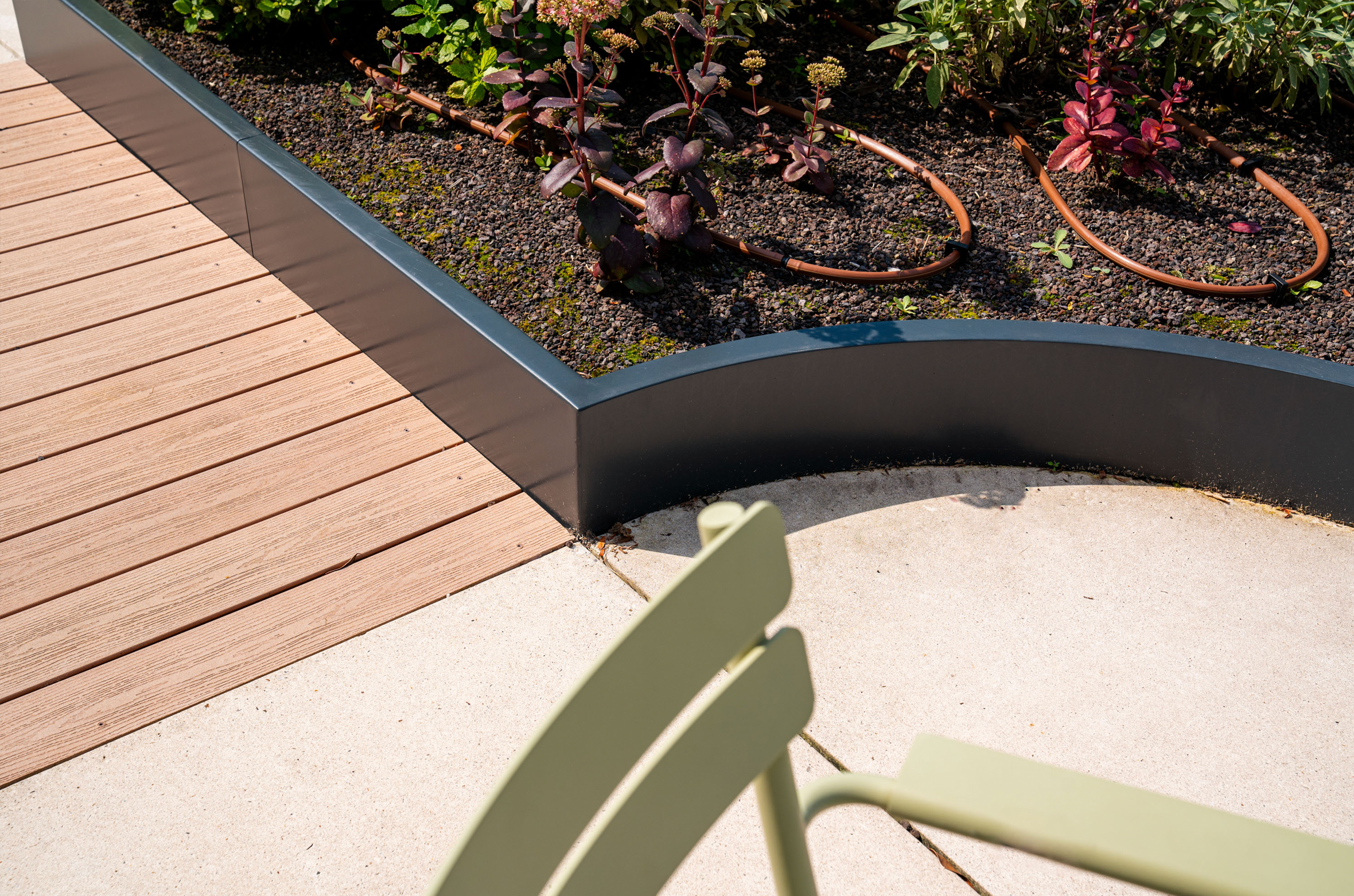 Integrated coupling systems allow clean, blind connections and consistent detailing across straight runs, corners, and curves. For landscape architects, this modularity supports design agility. Curves can be resolved without improvised fabrication on site, and junctions maintain architectural clarity.