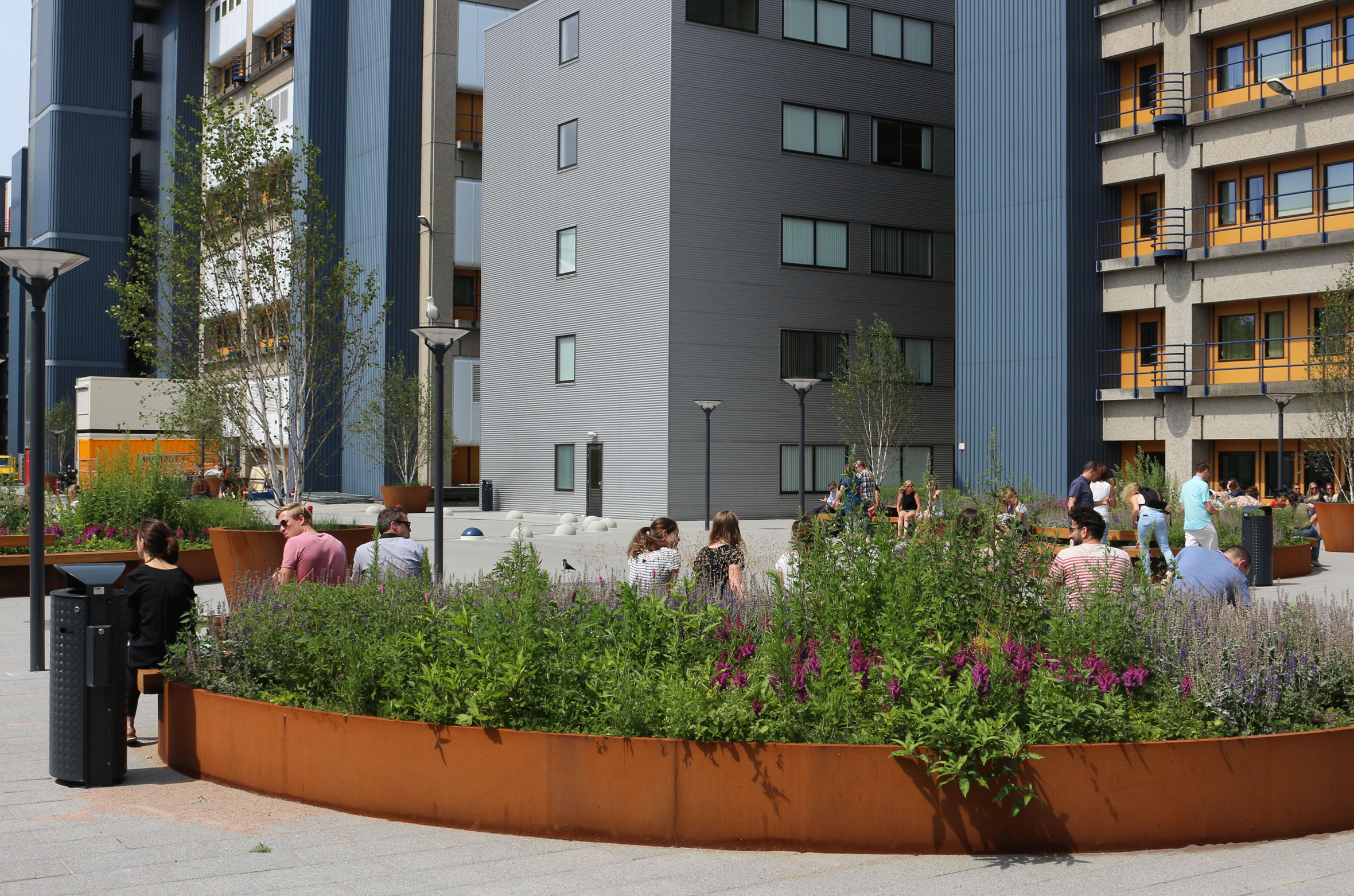 Colour-controlled finishes are also gaining traction. Sendzimir galvanised steel, finished with a primer and Qualicoat class 2 powder-coated top layer, provides access to a full RAL palette while maintaining corrosion resistance through its zinc layer. This is particularly relevant in coastal or high-exposure environments, and in projects where landscape elements must align precisely with architectural cladding or joinery colours.