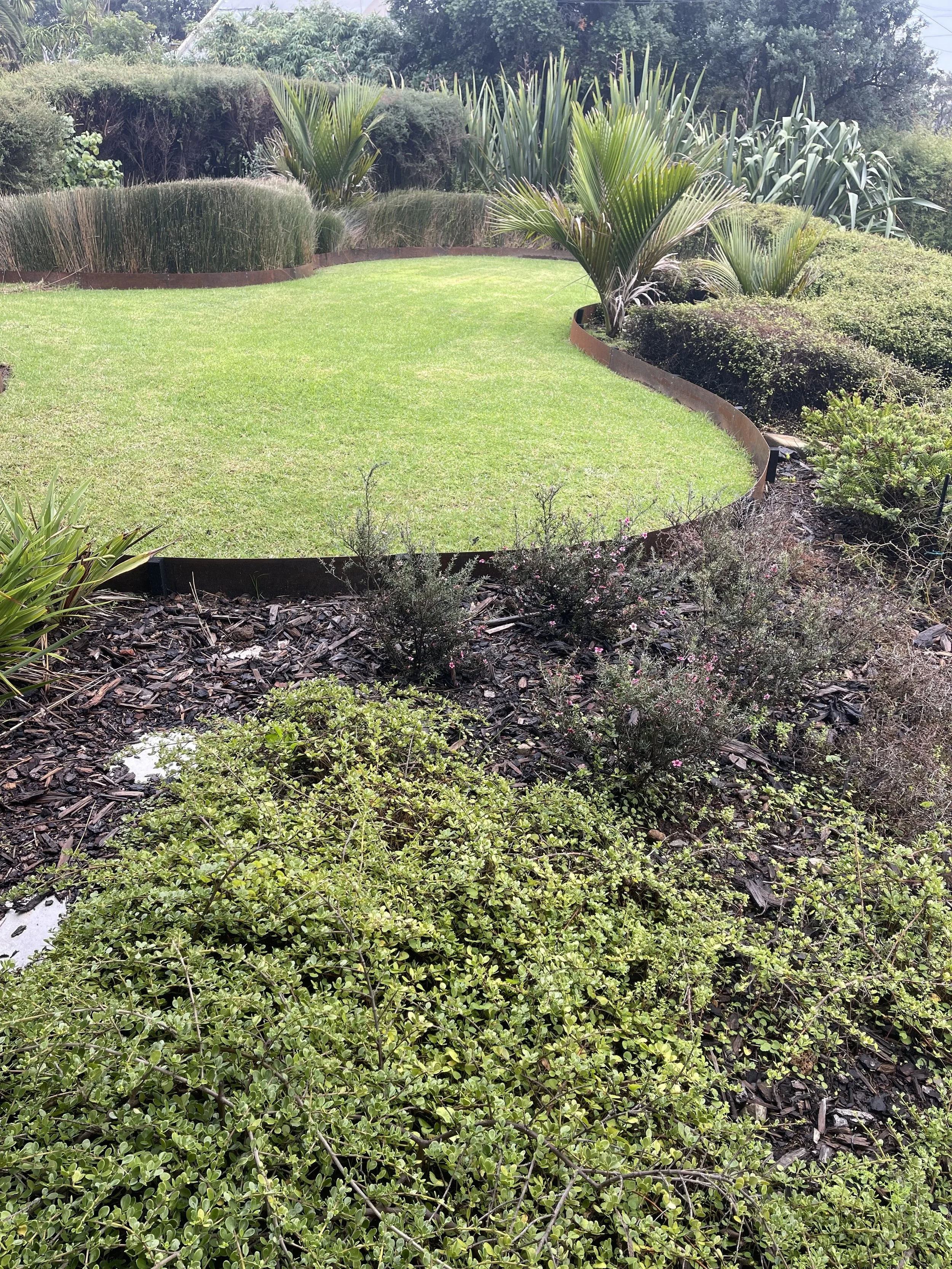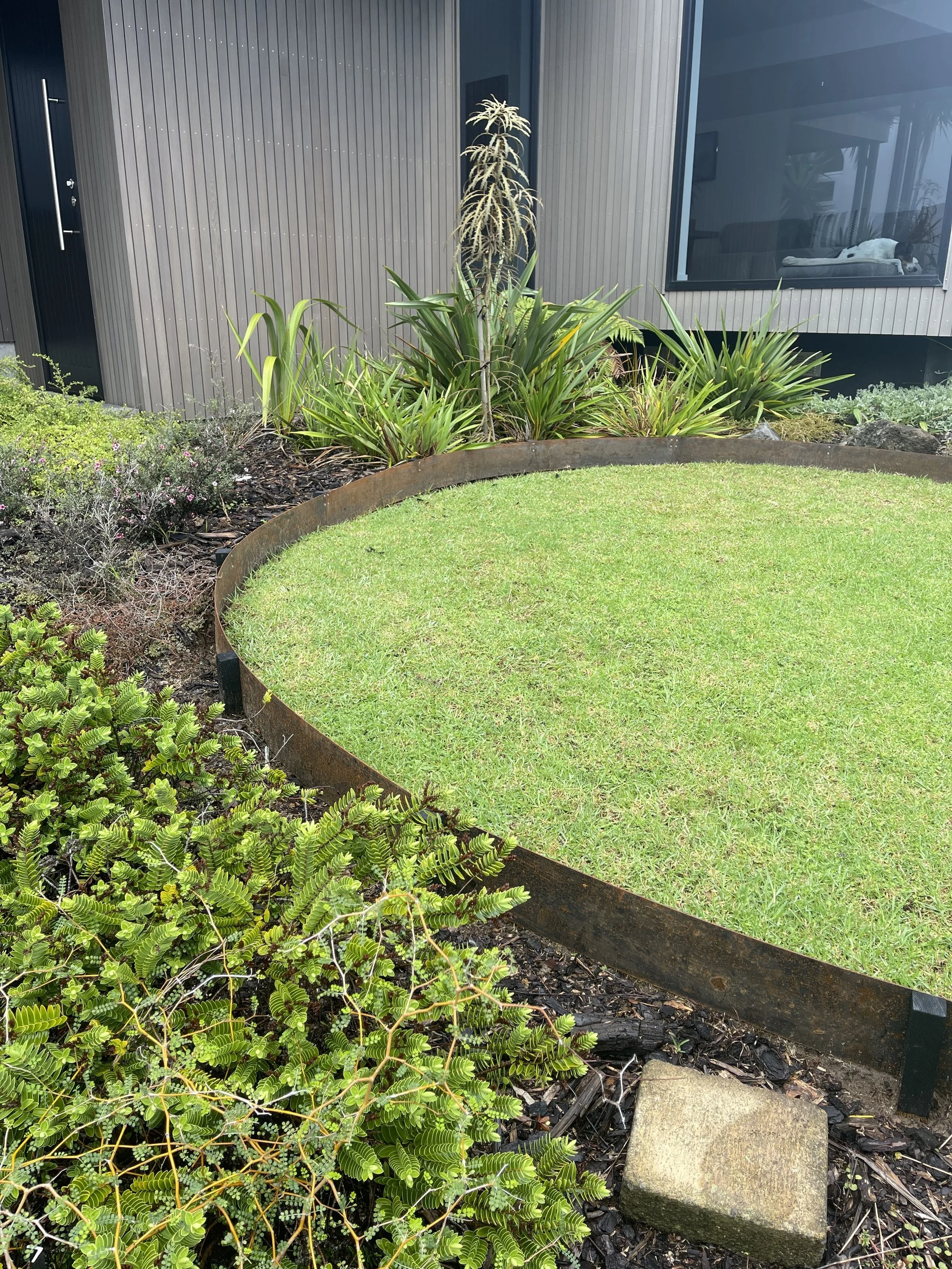 In Muriwai, Auckland a landscape design by KPLC exemplifies the creation of soft forms and boundary definition through the integration of Archipello. edging.