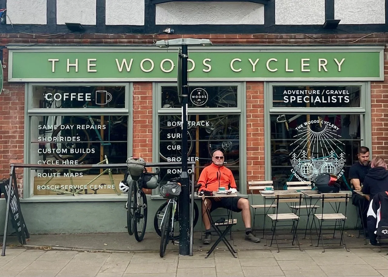 Paul on our stop for sandwiches and coffee at a great bike shop, Lyndhurst.