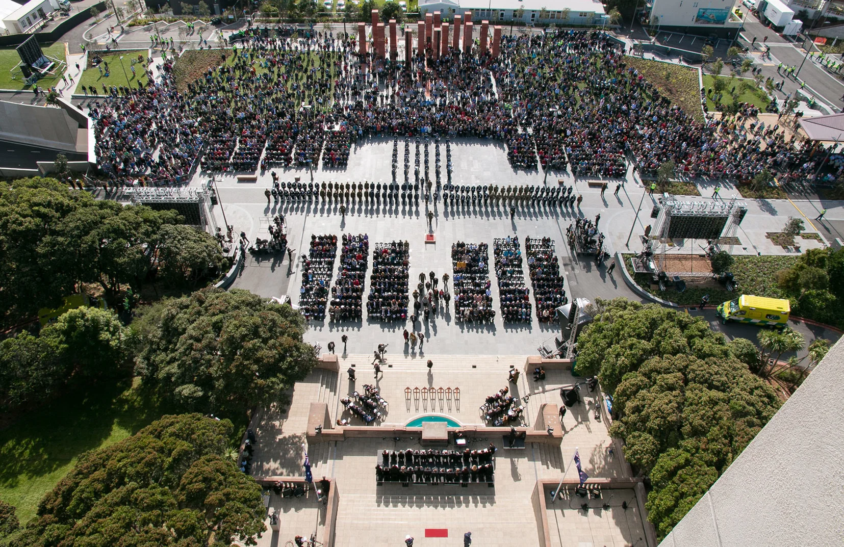 The day we shot our video of the 2017 Resene NZILA Pride of Place award winning Pukeahu National War Memorial Park, conditions were perfect. The capital sparkled as she does on the proverbial good day and a visiting dignitary was paying his respects there. As his entourage sped off in crown cars Wellingtonians reclaimed the space - skateboarding past, doing tai chi in sheltered spots and parents began chasing toddlers over manicured lawns. This is a nationally important urban space which works on every level.