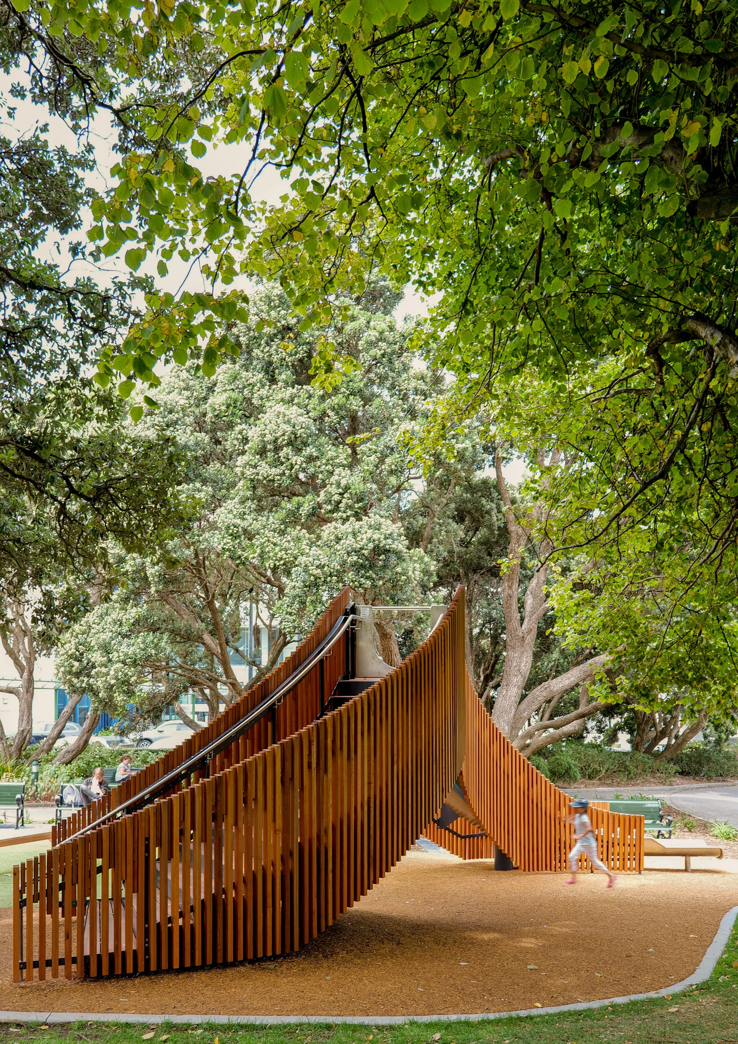 The slide was manufactured in Palmerston North and uses sustainable forest beech. Photo credit: Studio Pacific Architecture