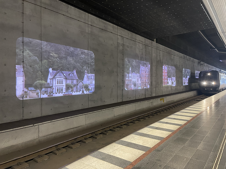 At Malmö Central Station, a monumental work of video art is projected directly onto the concrete walls with 46 linked images giving the illusion of being in a moving train. No advertising billboards here, just slow, silent art. Image: Ralph Johns
